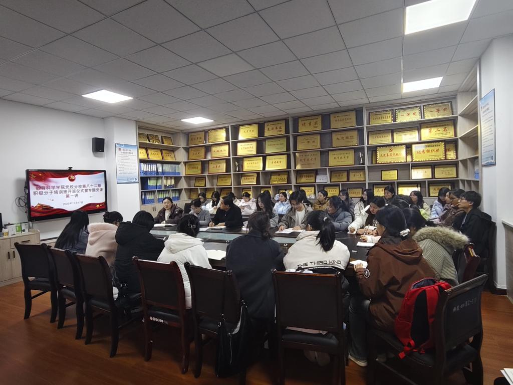 为加强入党积极分子培养工作,提升党员发展质量,11月17日,教育科学学院党总支在2218会议室隆重举行第82期入党积极分子培训班开班仪式暨党的二十届四中全会精神专题党课。学院党总支书记李武军、第二党支部组织委员李旭君及全体参训学员参加仪式。会议由党务秘书崔娟主持。