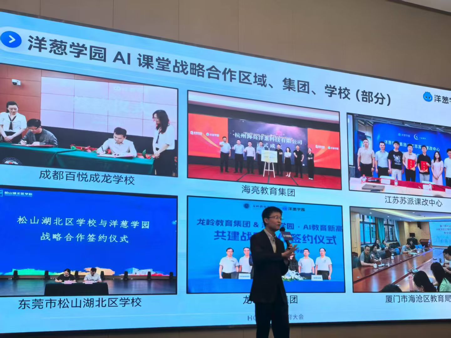 主题报告与实践分享多领域专家、校长及企业代表围绕AI教育应用展开主题分享:百悦成龙教育集团负责人探讨“AI +自学”模式如何助力学生高效学习;洋葱学园团队介绍企业在AI赋能学习方式变革、校企合作打造学科课程新样态的实践成果;学思达教育基金会创始人聚焦“培养AI无法取代的能力”,强调核心素养培育的重要性;中国教育科学研究院、中国民办教育协会专家则分别从 “教师角色创变”“中小学教育困惑与变革” 角度,提出AI时代教育发展的方向与路径。此外,东莞、岳阳、海亮等地中小学负责人分享本校AI在教学管理、学科教学中的应用案例,为参会者提供可借鉴的一线实践经验。