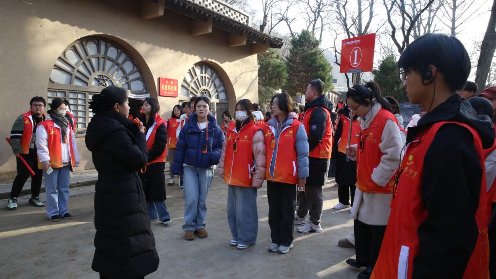 研学第二日,师生们走进枣园革命旧址。这里是“为人民服务”精神的重要发源地,毛泽东、刘少奇等革命家的足迹遍布其间,见证了《论联合政府》等重要文献的诞生。在青砖灰瓦间,学子们重温革命先辈以笔为剑、以志为灯的奋斗历程,进一步明晰了“为人民服务”的精神内核,更深感新时代青年肩上的责任之重。研学的收官之站设在宝塔山。在这场“行走的思政课”上,讲解老师以白求恩“毫不利己、专门利人”的奉献事迹为切入点,生动阐释了延安精神中奉献品格的时代传承。登临山顶俯瞰延安城全貌,延河碧波与城市新貌交相辉映,革命旧址与现代建筑遥相呼应。师生们在聆听革命故事中接受精神淬炼,在眺望山河中坚定理想信念,更深刻领悟到宝塔山作为革命灯塔的精神象征意义。