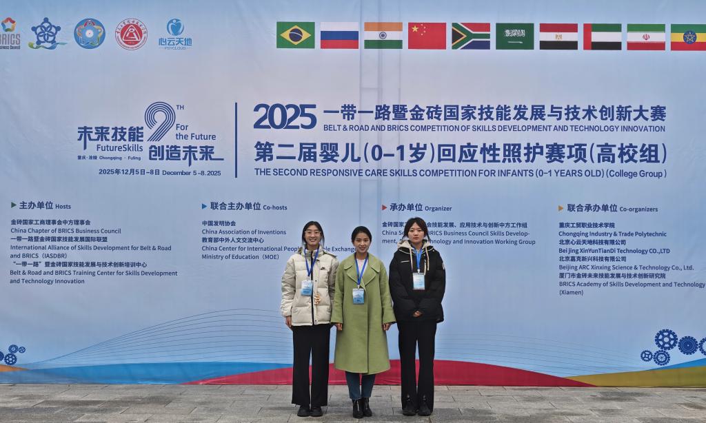 2025年12月5日至8日,2025“一带一路”暨金砖国家技能发展与技术创新大赛“婴儿(0-1岁)回应性照护”赛项全国总决赛在重庆工贸职业技术学院成功举办。本次大赛由金砖国家工商理事会中方理事会、“一带一路”暨金砖国家技能发展国际联盟等单位联合主办,汇聚了全国25个省、93所院校的167名选手同台竞技,旨在推动婴幼儿照护领域高素质技术技能人才的培养。